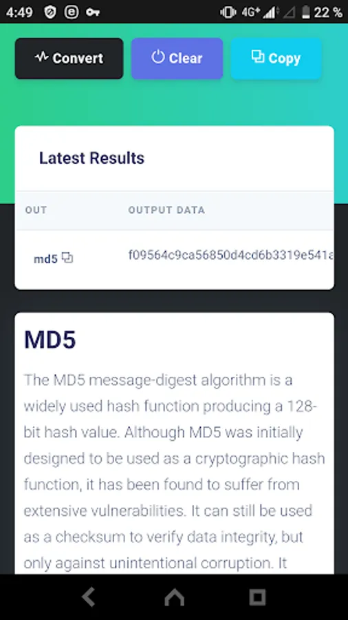 - Hash MD5