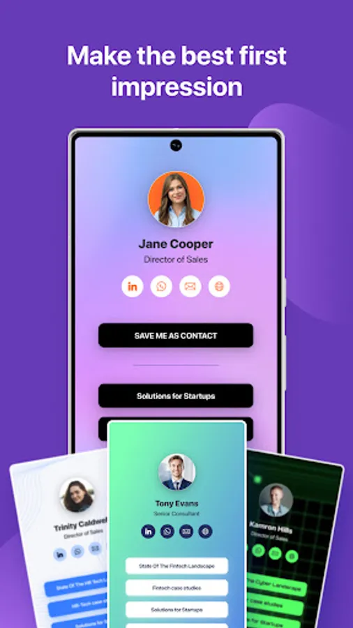 Tap your inperson Card to the back of any smartphone or use the QR code on the card to instantly share all your information.
