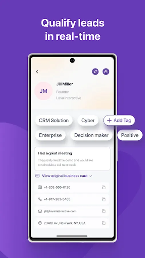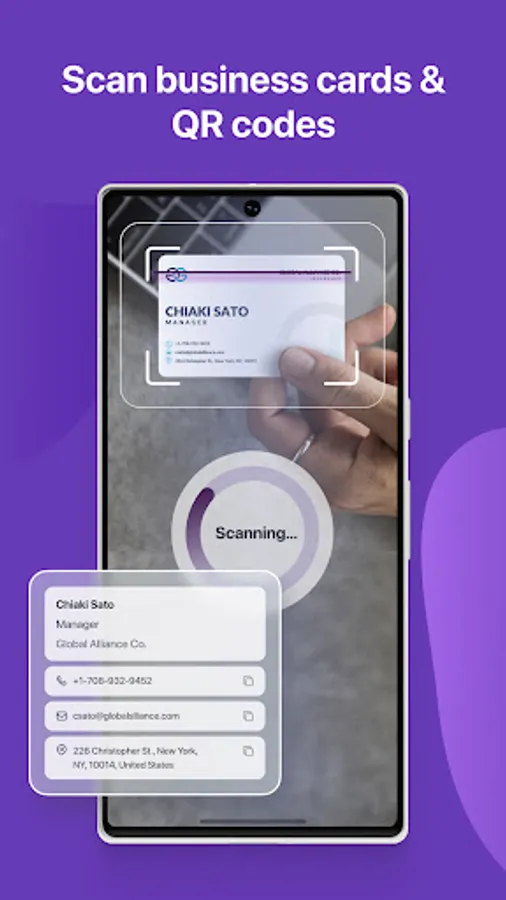 Easily scan paper business cards or QR codes of people you meet, and we will automatically convert them into digital connection.