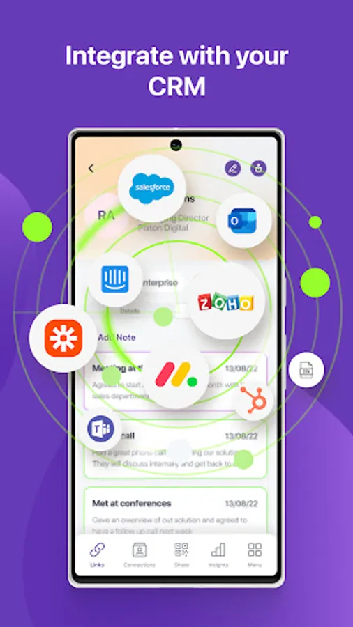 Sync all your connections with your favorite CRM in real-time. Choose from Salesforce, HubSpot, Zoho CRM and many others.