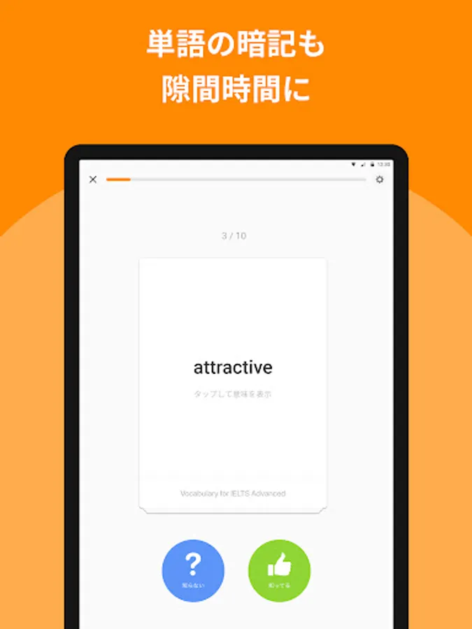 Just flip the card to the right if you know it, or to the left if you don't. Touch English words you don't remember many times in this learning mode and try to memorize them!