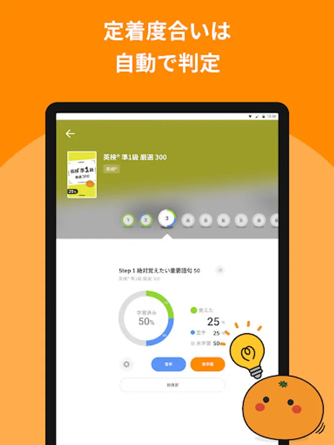 The official character "Hitokawa Mukeo" will cheer and support your learning. Mukeo encourages you regardless of your score, so you can enjoy studying.