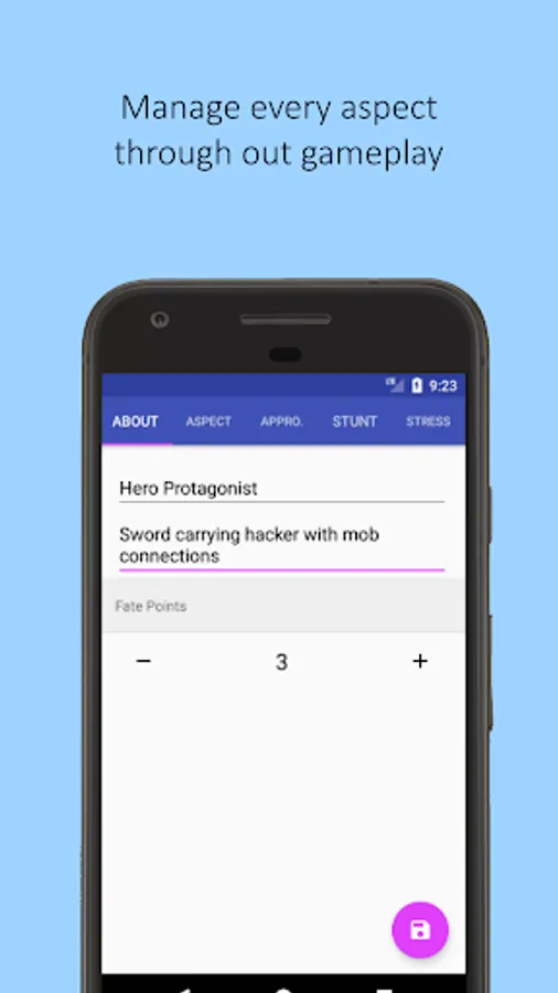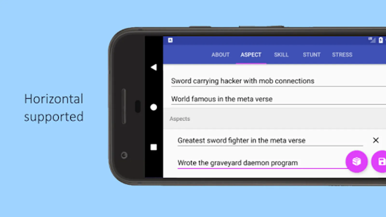 * Flexibility to add any number of skills, aspects, stress or consequences