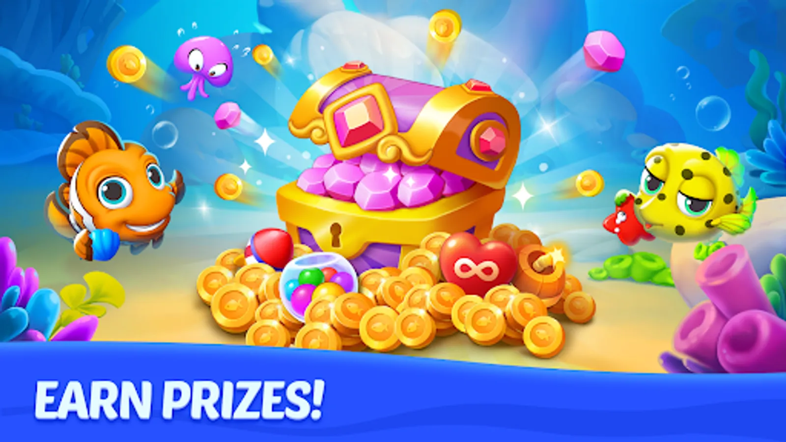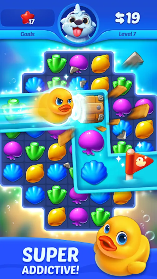 Match 3 or more colorful pieces in order to clear the game board and solve exciting puzzles, receive free coins for unlocking new fish and decorations, design a cozy home for your lovely fish friends and get powerful boosters to continue your match 3 puzzle saga!