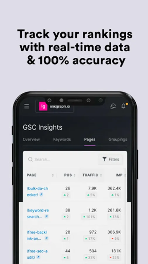 - GSC Insights - Track your keyword rankings and organic traffic with 100% accuracy and daily impressions data
