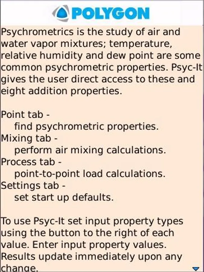 Psychometrics is the study of air and the water vapor within it as a mixture; temperature relative humidity and dew point are some common psychrometric properties. Psyc-It gives the user direct access to these and eight additional properties. The program allows multiple uses including: