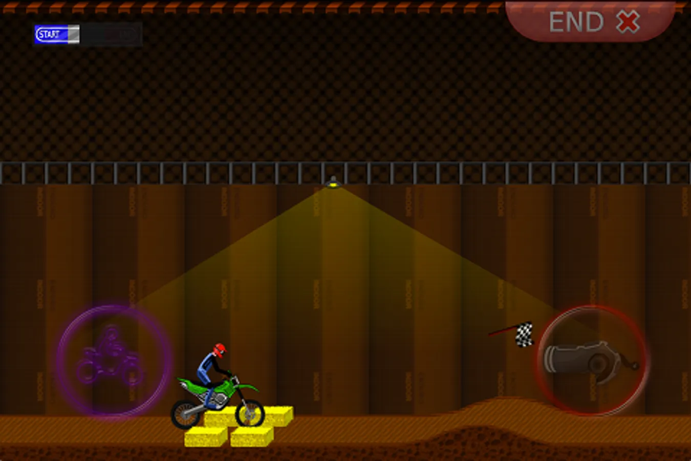 You have two controls to manage your bike. The right knob controls the speed at which you run allowing you to accelerate and slow down as if it were a real motorcycle, the left will help you control the stability of the bike.