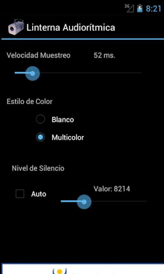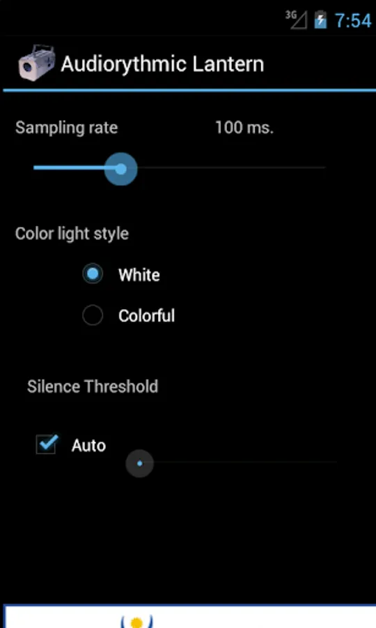The audiorythmic lantern will listen into ambient sound through your Android device's microphone and brighten the screen (or the led FLASH on the back of your Android device) accoding to the sound level it registers. It is an attempt to get the effect of an accurate audiorythmic light.