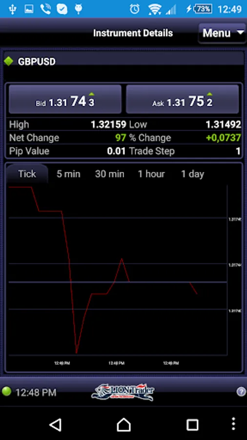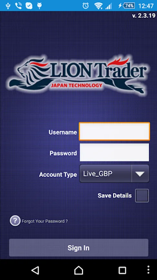 LION Android Trader is the Android version of the popular LION Trader platform by Hirose Financial UK Ltd. It allows you to trade the same instruments you can on the desktop version. Simply log in with your LION Android Trader username and password to access your trading account, orders, and open positions. Place trades, monitor your account, and even view live charts. Your account data and trading activity are synced in real time. Trades you make on the Android are reflected on the desktop application, and vice-versa.