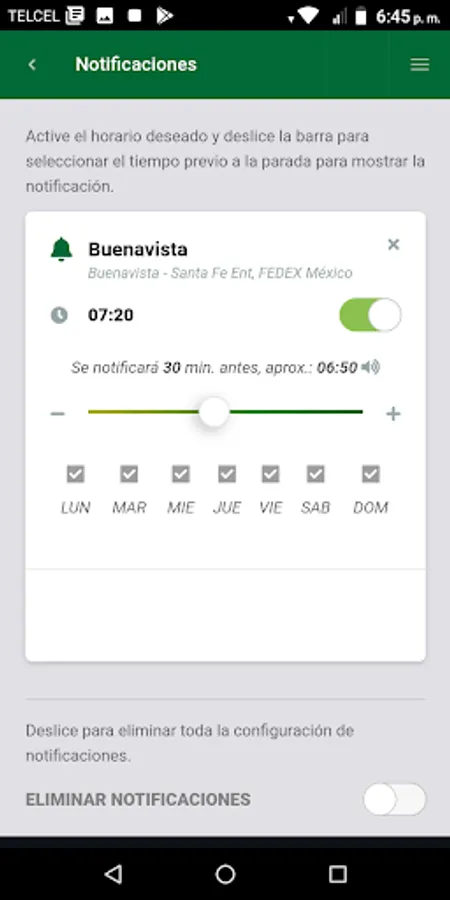 - Allows you to activate a previous notification at the scheduled time of each stop.