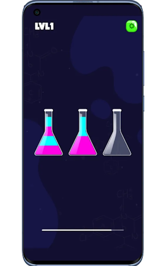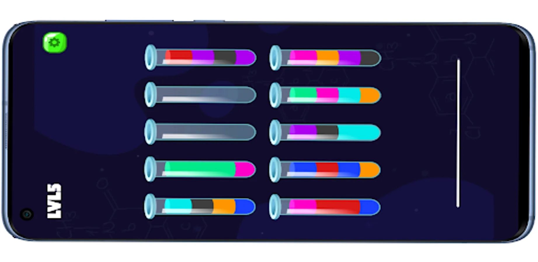 Choose your preferred filled tube or beaker from a selection of 6 different shapes. Levels are unlocked in a sequence, with only the first level initially available. Locked levels are grayed out and can be unlocked by completing the previous level. If you start the game by selecting Play, the game will automatically load the next level. However, when playing individual levels, they will not automatically load the next level as you play. The game consists of 26 levels, and the basic rules involve moving chemicals from one tube to another to sort them. You start each game with a limited number of empty beakers and several filled ones. Tubes containing chemicals of the same color will blend together and cannot be un-blended. You can only move a tube's contents to another tube that still has room for it, and around 5 units of chemicals can fill the tubes at any given time. Your goal is to sort all the chemicals in the beakers before the timer runs out. The timer bar at the bottom indicates how much time you have left, and if it expires, the game is over. Your level score is based on the amount of time remaining when you finish the level, and each score you earn is added to your cumulative score. Mixing too many liquids too soon could make them impossible to move and the level unclearable, so be careful when grouping liquids together. Additionally, pay attention to the colors of the liquids carefully, as some liquids have very similar color shades. This game is suitable for anyone interested in a challenging and engaging puzzle game that requires careful planning and attention to detail.