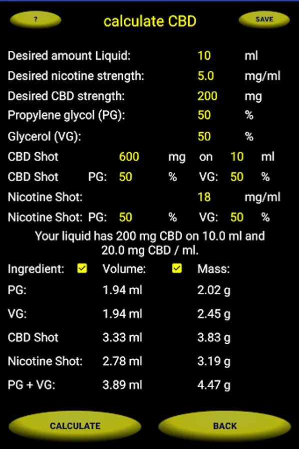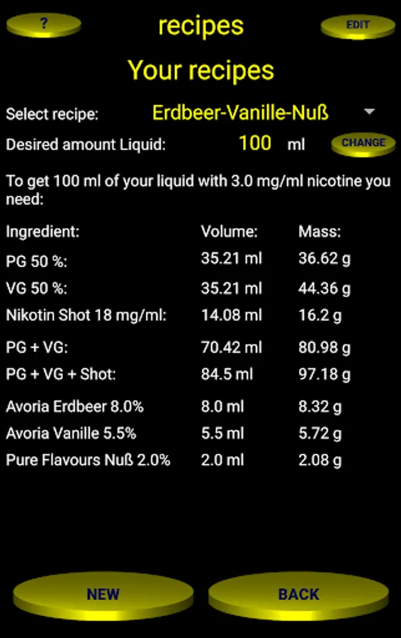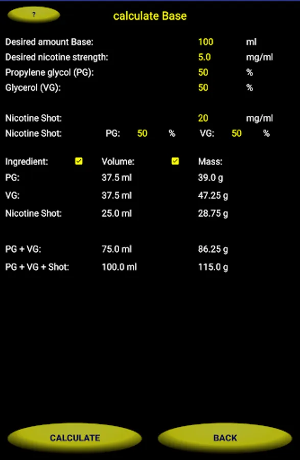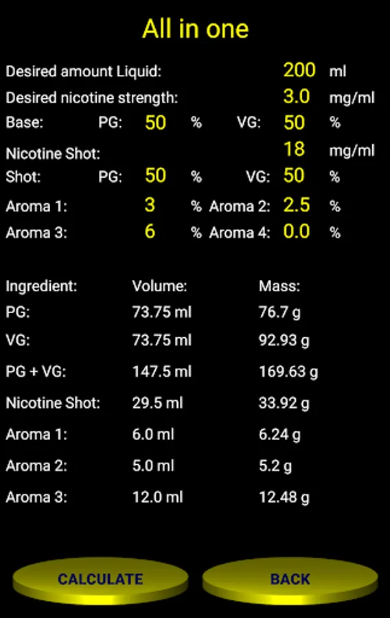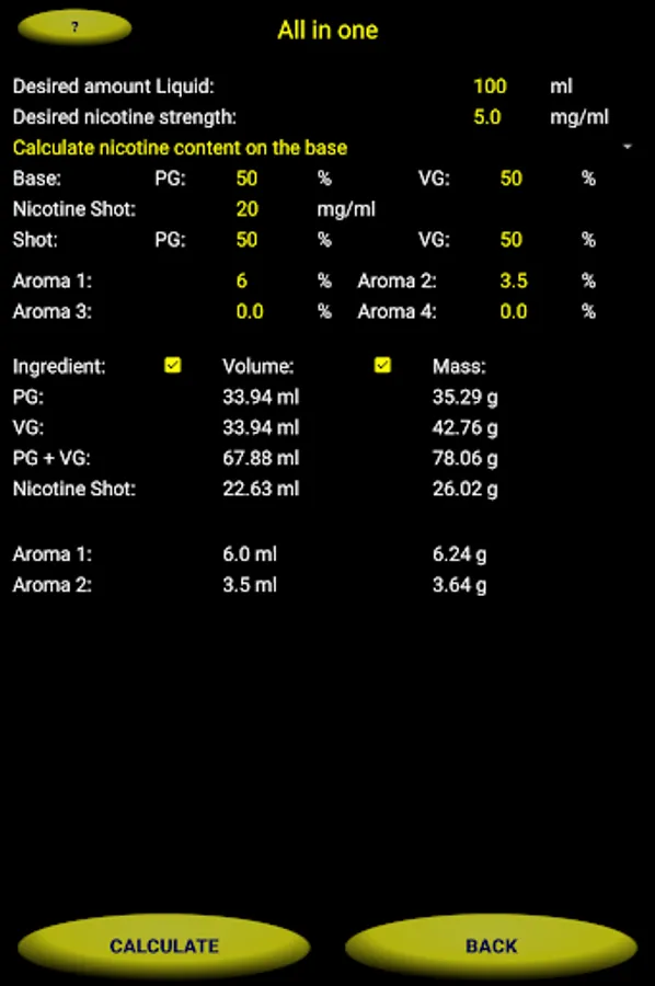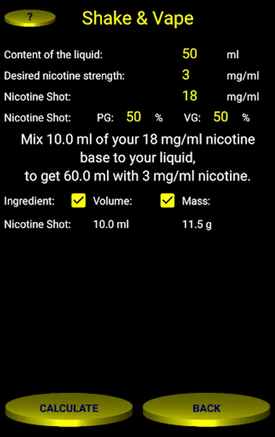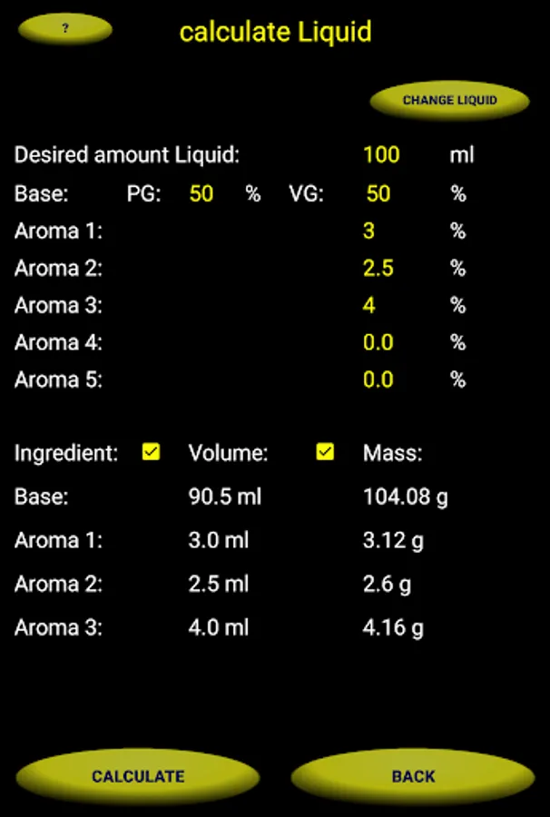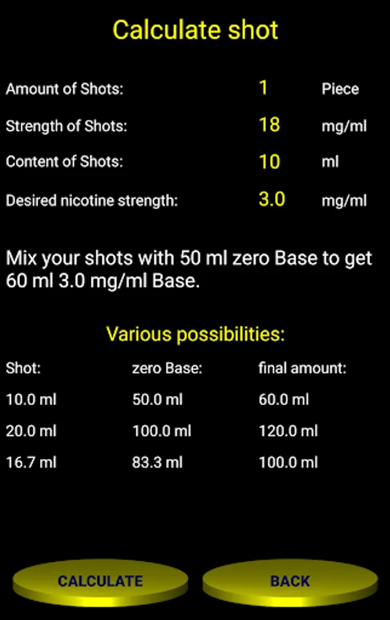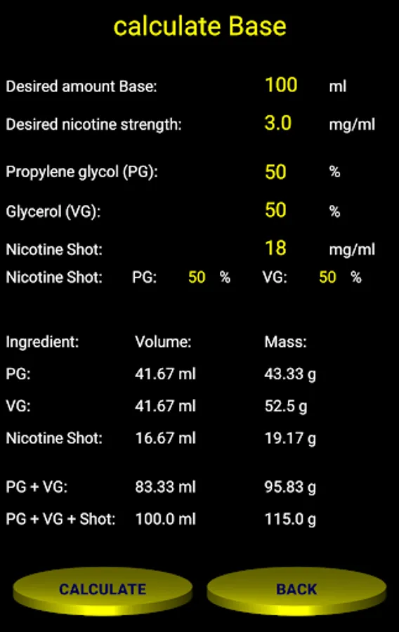 Mixing is so easy. Calculate the amounts of base, nicotine and aroma in the simplest way.