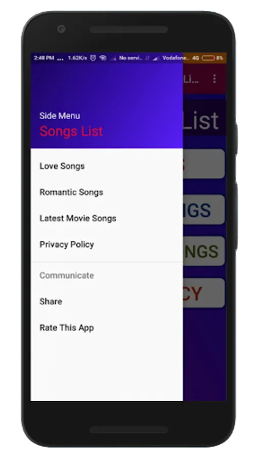 In this app user can get love songs,romatic songs and latest movie songs list.
