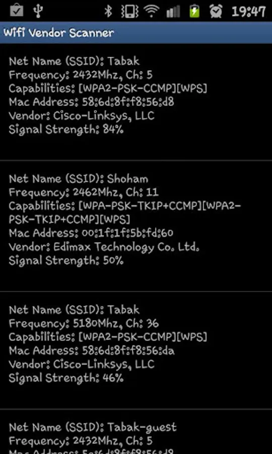 It also shows the channel, security and the MAC address.