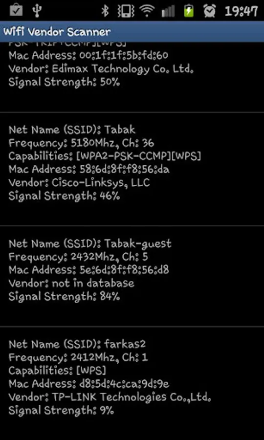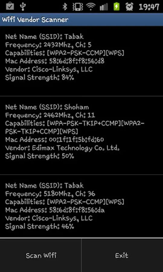 This application's sole purpose is to show the vendor/ manufacturer of the Wifi networks in range.