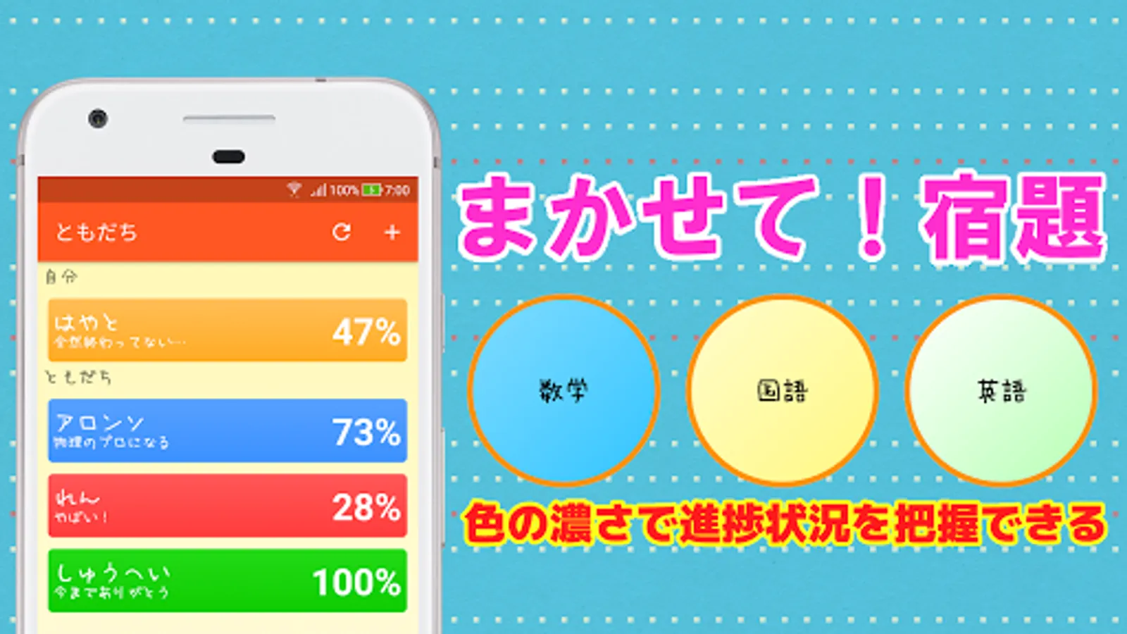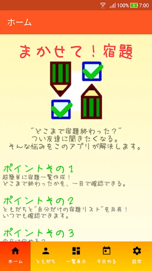 I narrowed down the function to homework management, I made elementary school students, junior high school students, high school students, a design that is easy to understand for everyone, easy to use.