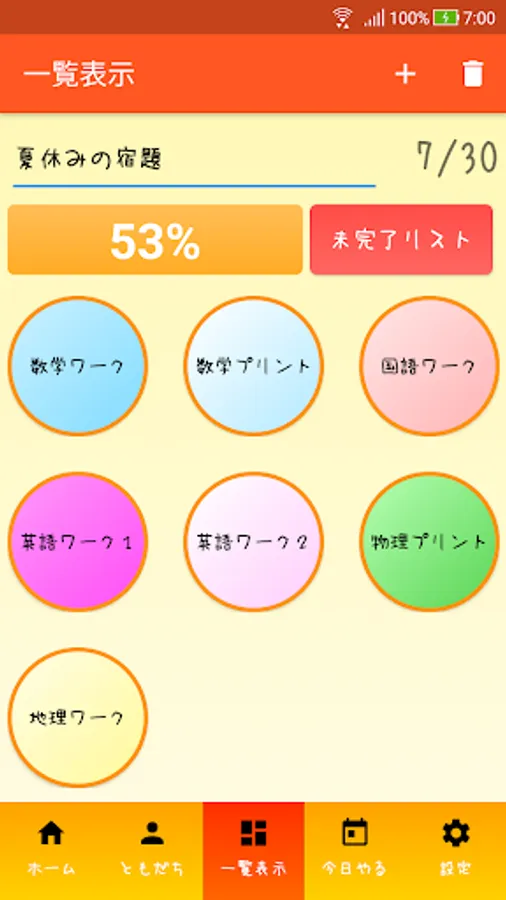 As the homework ends, the color of the button becomes darker so you can immediately check "how much homework ended!"
