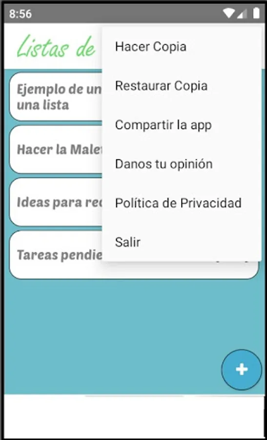 To avoid the loss of information, the app allows you to make and restore backup copies