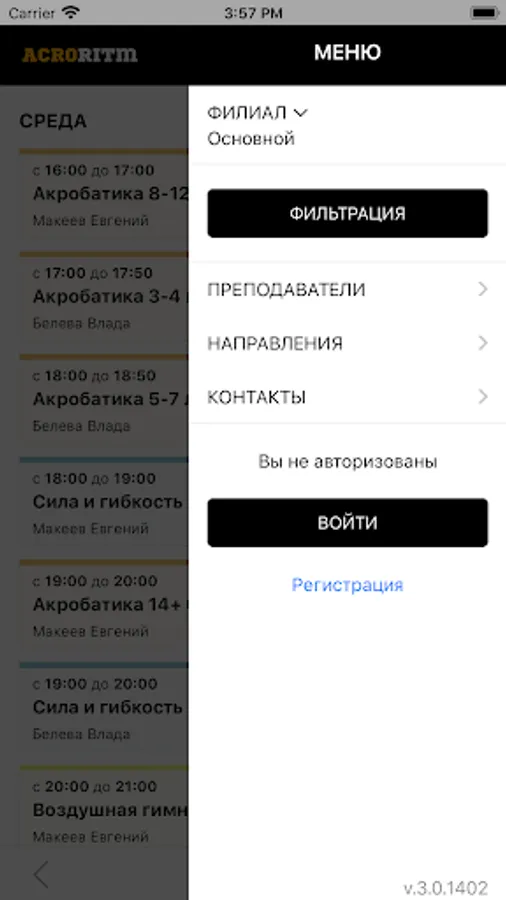 Everything is simple with us. 2 family centers in Moscow and 1 in Yekaterinburg and more than 10 areas for children and adults training: acrobatics, artistic gymnastics, rhythmic gymnastics, aerial gymnastics, stretching, ballet, body ballet, barre.