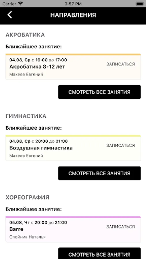 In the application, you can sign up for a training session, track the number of remaining lessons on the subscription and its validity period, read more about our trainings and our team.