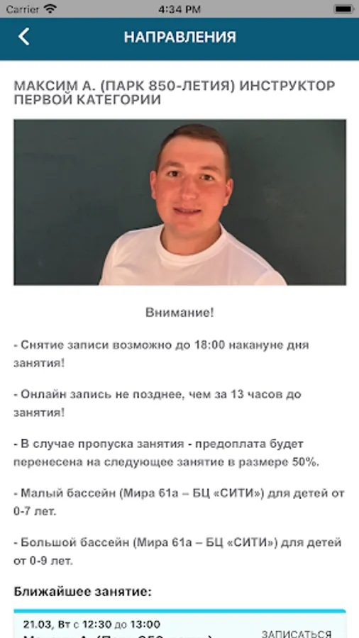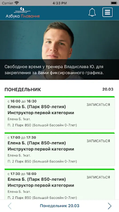 This application will allow you to view the current schedule and independently record the child in the classes of the swimming pool "Alphabet of Swimming", as well as monitor the status of the current subscription of the child and view the history of payments and visits.