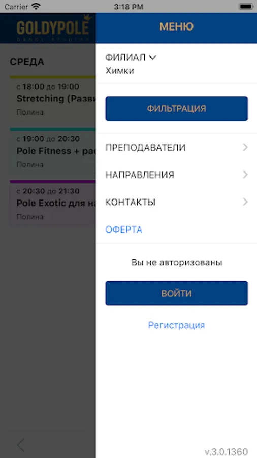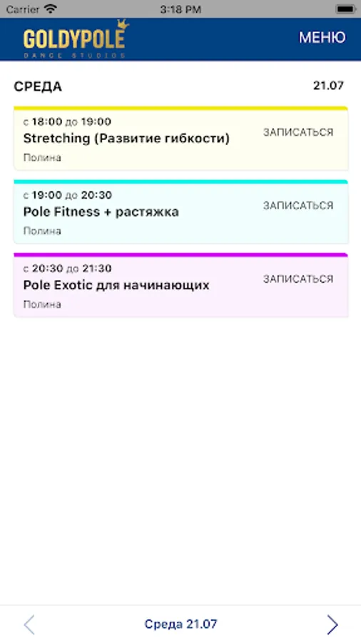 This application will allow you to view the current schedule and independently sign up for the dance studio "Goldypole", as well as monitor the status of your current subscription and view the history of payments and visits.