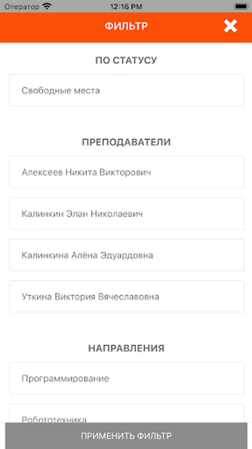 The possibility of recording, canceling registrations for classes, viewing the schedule, news, history of payments and visits is open.