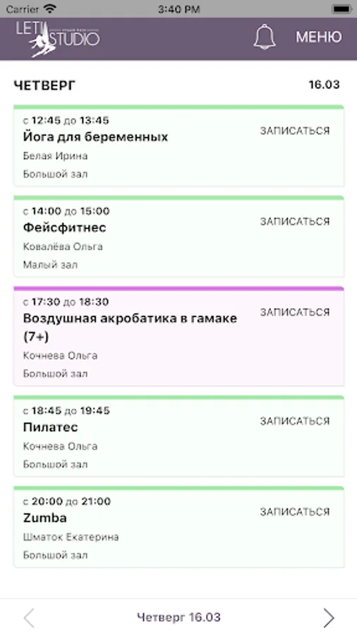 The application is intended for clients of the yoga studio "Leti Studio".