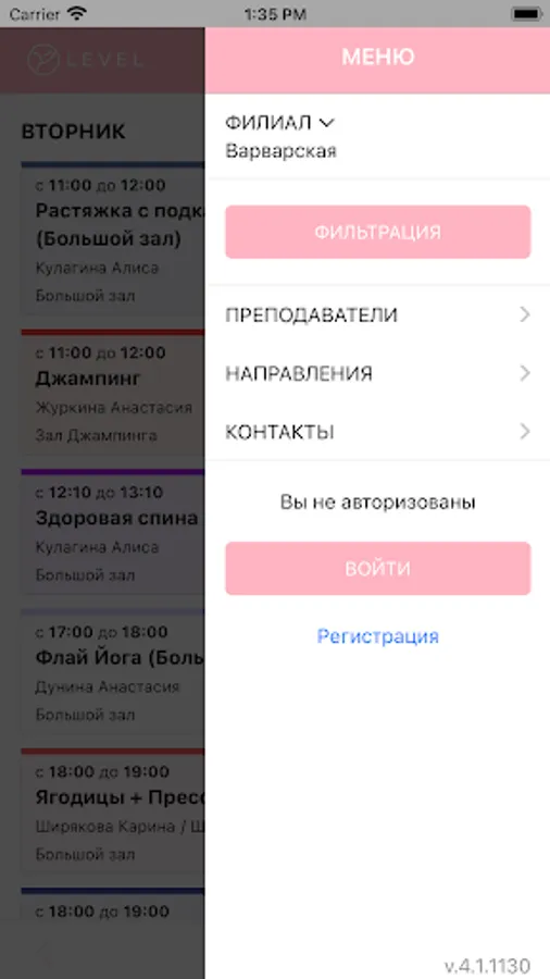 Mobile application for LEVEL stretching and fitness studio clients.