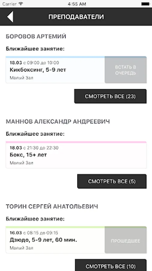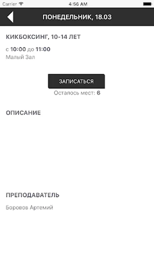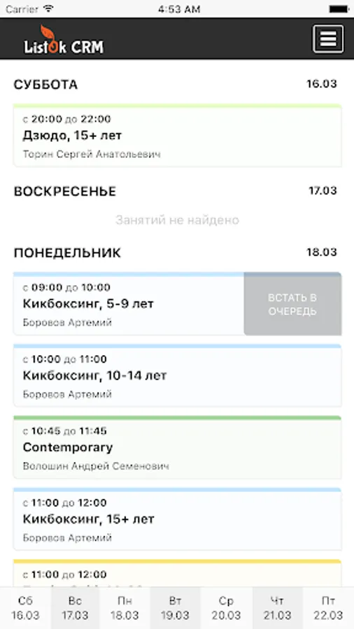 Demo application. It allows you to view the current schedule and independently sign up for club classes, as well as monitor the status of the subscription and view the history of payments and visits.