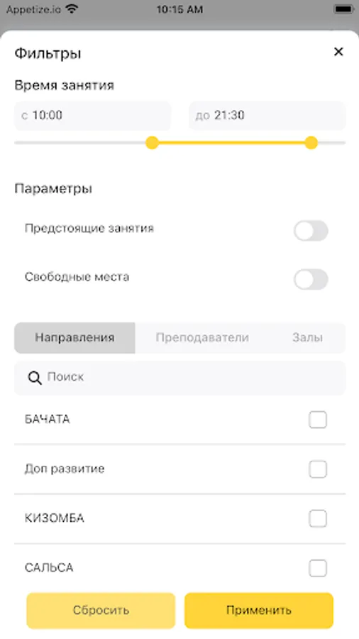 Manera is an app for a dance school for adults in central Kazan, where you can learn salsa, bachata, and kizomba solo or in a couple, individually or in a group. Here you can find classes at your level using the online schedule, sign up for a chosen class, and track your attendance history and membership purchases. Enjoy an exciting system of bonuses and gifts during your training. Turn on notifications and be among the first to know about all the events and news from our studio!