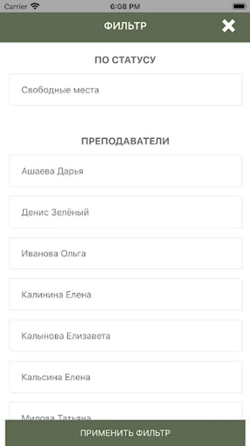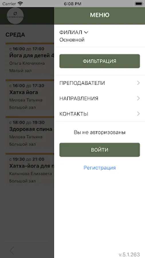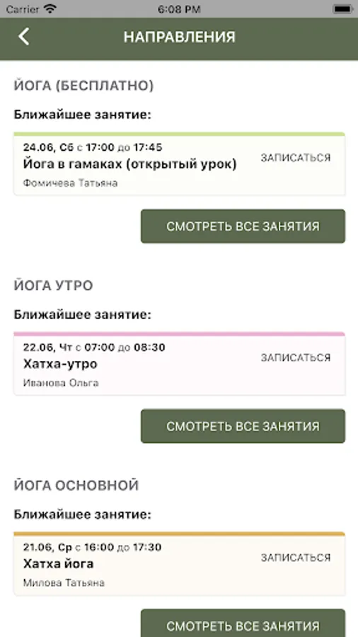 The possibility of recording, canceling registrations for classes, viewing the schedule, news, history of payments and visits is open.