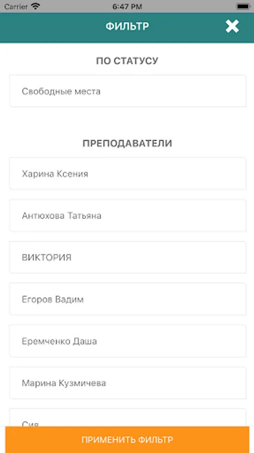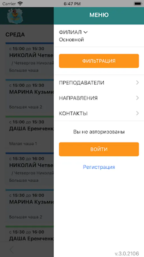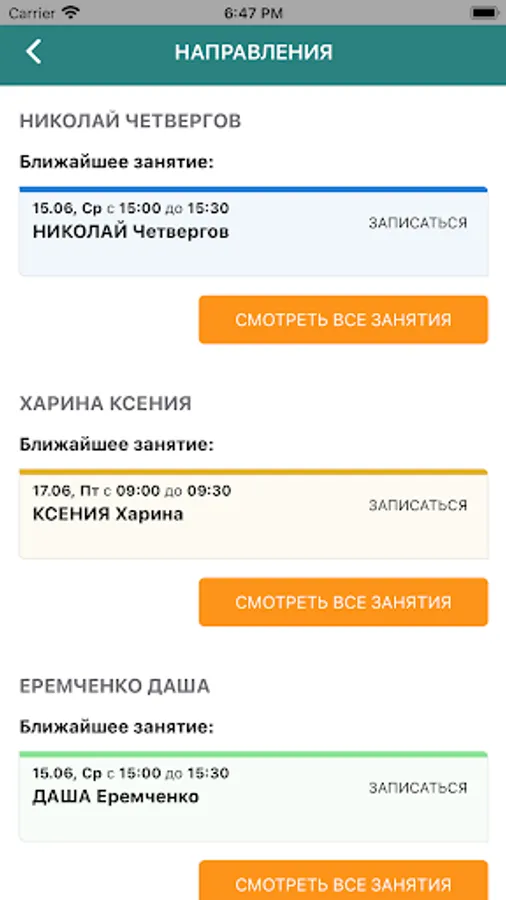 The possibility of recording, canceling registrations for classes, viewing the schedule, news, history of payments and visits is open.