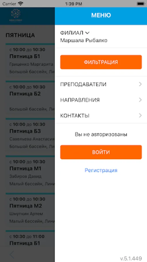 Application for clients of the early swimming studio Aquaclass, Moscow, Marshal Rybalko st. 2, k4
