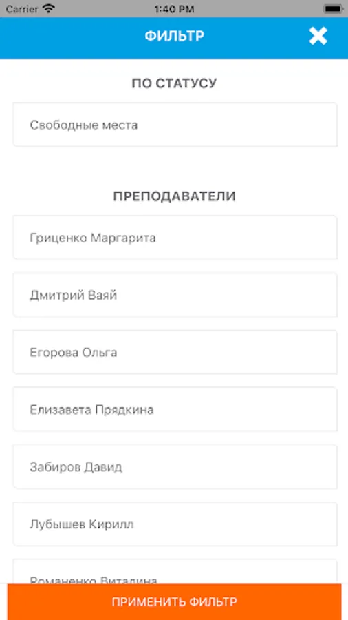 In this application, you can easily sign up with your instructor, reschedule or cancel a lesson, monitor the status of your current subscription, view payment history, buy a subscription or a one-time lesson. The current schedule and studio news will always be on your phone.