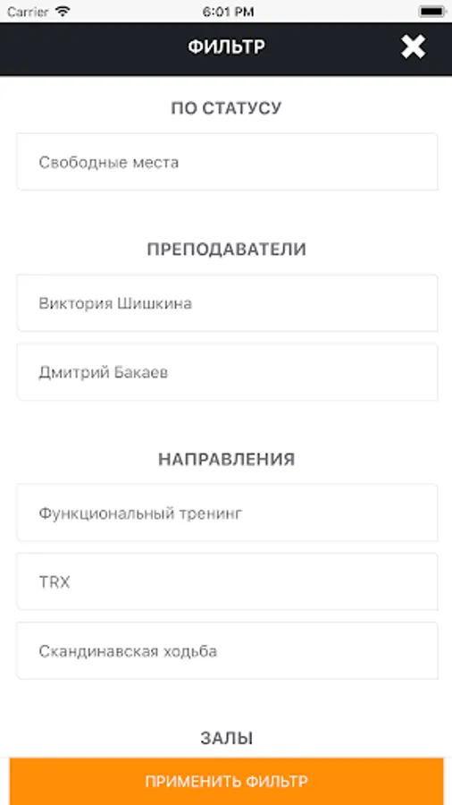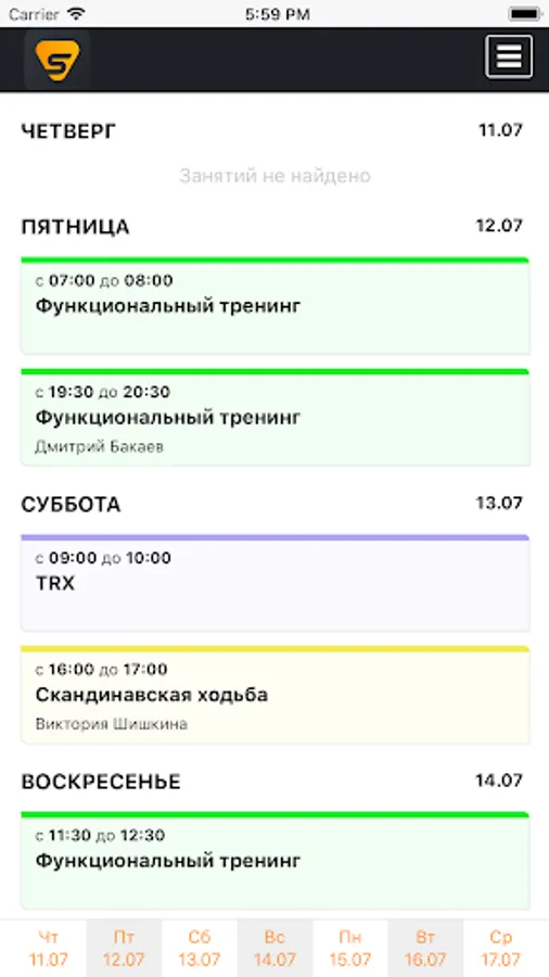 ⁃ 70+ points with daily group workouts and a coach departure service at any place and time.