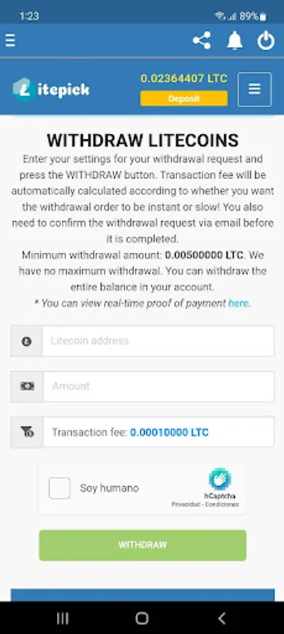 In this application you can earn free fractions of Litecoin every 60 minutes.
