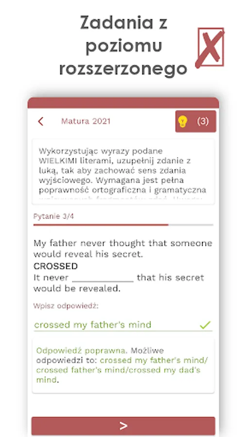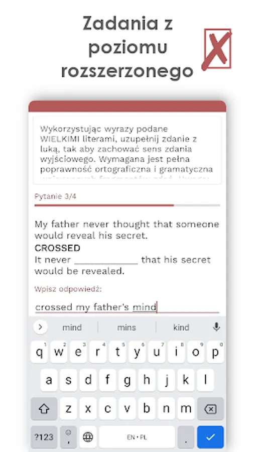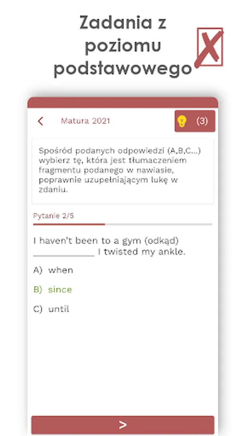 The application will help you prepare for the Matura exam in English at both basic and advanced levels. Solve the tests with the sets of questions that have appeared at the secondary school-leaving examination since 2006. The application includes questions to check the knowledge of grammar, lexical means and vocabulary. The application does not require an internet connection - practice, learn and improve your results anytime and anywhere.
