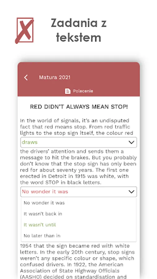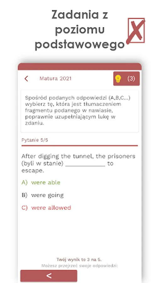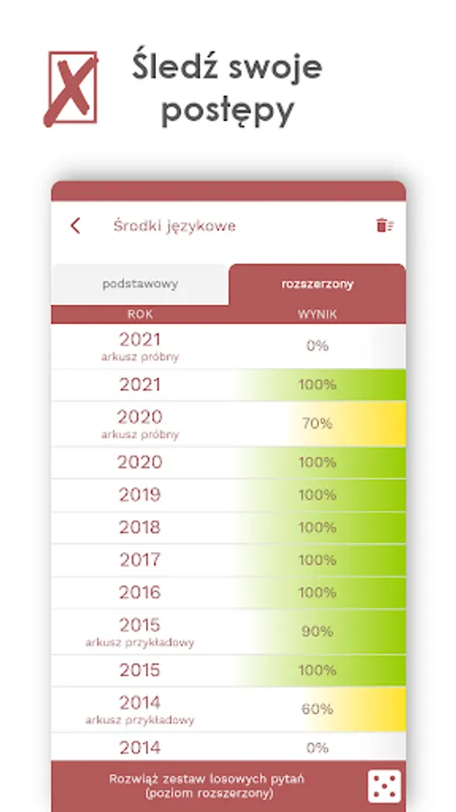 - the application stores your current results, thanks to which it is possible to track the progress of preparation for the matura exam,