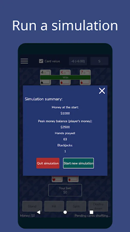 • Simulation mode, allowing you to test basic strategy effectiveness.