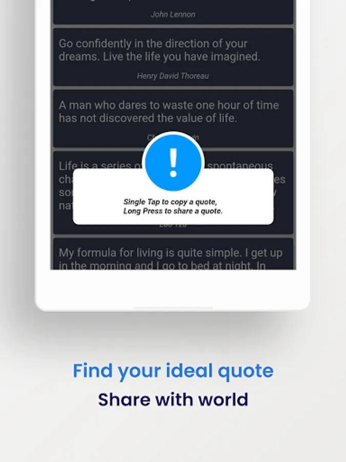 ★ Share a quote with a long press to your favourite social networks including whatsapp, facebook, instagram, twitter and much more.