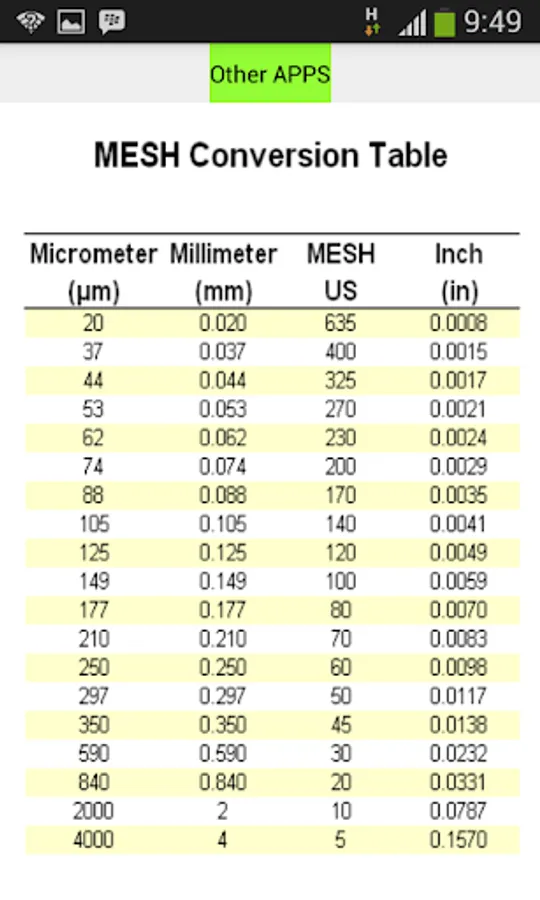 A simple and easy-to-use unit converter. Particle size / sieves / MESH Conversion TABLE , Comparison of VISCOSITY Measurement , Periodic Table .