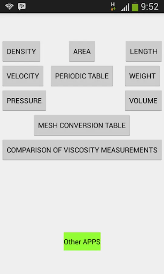 AREA unit Converter, DENSITY unit Converter, LENGTH unit Converter, VELOCITY unit Converter, VOLUME unit Converter, WEIGHT unit Converter, FORCE unit Converter, PRESSURE unit Converter.