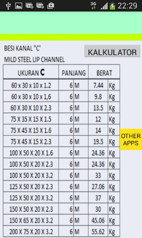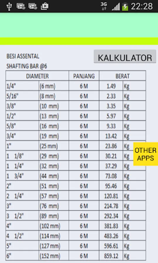 Table of Heavy Iron is used estimate the amount of iron in Kg necessary