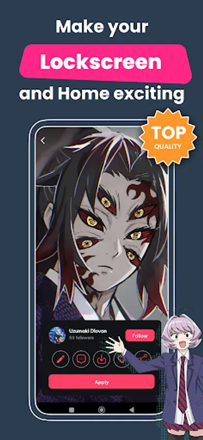 Anime live wallpapers where you can find the best anime live wallpapers! cute anime wallpaper live is the best animated background app for you! if you are an anime freak and you like to watch the anime wallpaper, you will love this fabulous app! enter the amazing world of anime fairy tale and meet all your favorite anime wallpapers characters! you will have a lots of fun with this free app! anime yourself with free anime images and enjoy the sight! if you adore watching the japanese movies, you will be so thrilled with this “anime live wallpapers”! enjoy the best pictures of fantasy girls and anime boy choose the one fanmade anime photo and set it as your “live wallpapers”! the best anime wallpaper app is waiting for you!