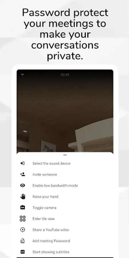 • Create a meeting and invite others to join the meeting by sharing the meeting code right from the app.
