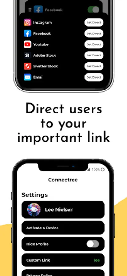 Customize your profile anywhere and anytime by changing the color of your profile as per your needs. Add app link or delete app link anytime. You can also redirect the user to your specific important link by setting it as direct.