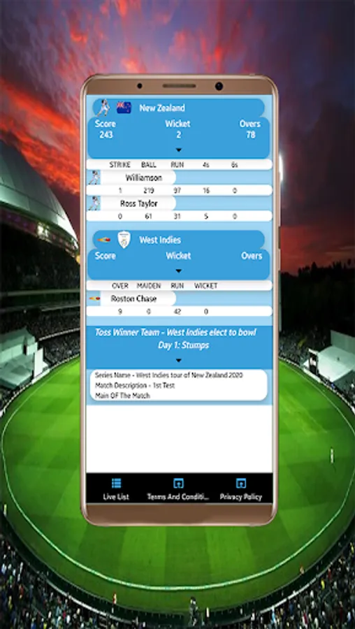 An International Live Cricket Matches 2020-21 Ball - by - Ball Runs
