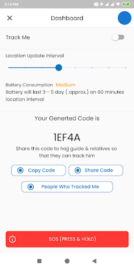 3. Provide exclusive access to your location to your friends and family. Simply install the Musafir app on your phone allow tracking and you will get your unique code to be shared with your FnF. Share the code with your FnF and they will be able to track you.