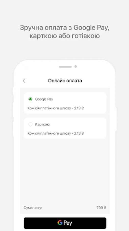 - Payment of the order in cash or online payment (by card, Apple Pay, Google Pay)
